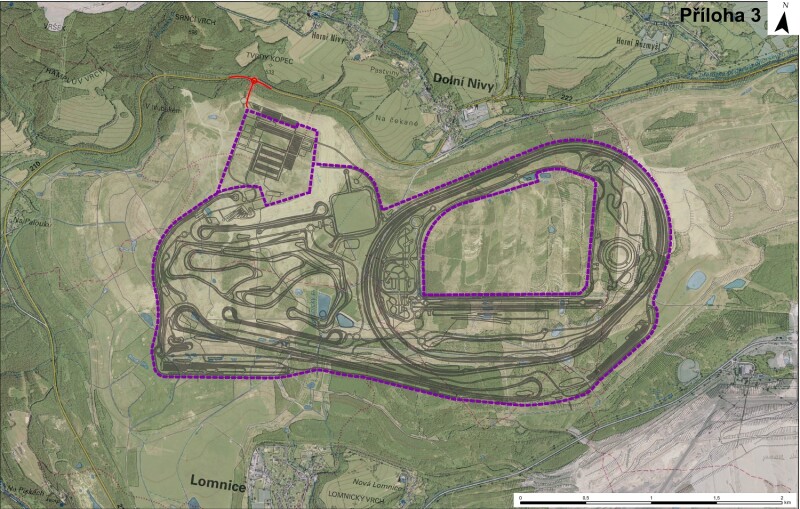 Karlovarský kraj připraví dvě varianty silničního napojení plánovaného testovacího centra automobilky BMW Group. V případě první varianty na stavbu silnice se náklady budou pohybovat kolem 45 milionů korun, v případě druhé varianty budou náklady až 187 milionů korun. Martin Hurajčík (ANO), náměstek hejtmanky, uvedl, že první varianta obsahuje pouze kruhový objezd s krátkým napojením a parkovišti, zatímco druhá varianta zahrnuje vybudování delšího úseku silnice, který by mohl posloužit k obsluze další části výsypky, pokud by měl nějaký investor zájem o toto místo podnikání.