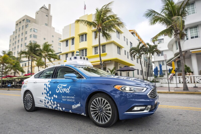 Testovací autonomní vozidlo Ford Fusion Hybrid firem Argo AI a Ford v Miami (foto: Ford)
